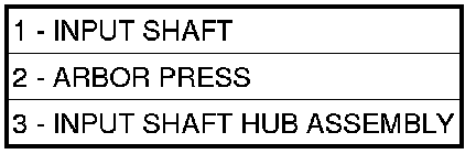 1. Using an arbor press (2), install input shaft (1) to input shaft hub (3).
