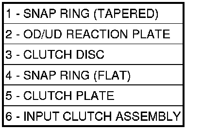 NOTE: Snap ring ends must be located within one finger of the input clutch hub. Be sure that snap ring is fully seated, by pushing with screwdriver, into snap ring groove all the way around.
