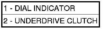 23. Using moderate pressure, press down and hold (near indicator) the UD clutch pack (2) with screwdriver or suitable tool and zero dial indicator. When releasing pressure on clutch pack, indicator reading should advance 0.005-0.010.