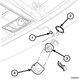 1. Position the Light Rain Sensor Module (LRSM) (3) to the center of the mounting bracket (2) on the inside of the windshield near the inside rear view mirror.