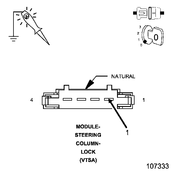 1. Using a 12-volt test light connected to 12-volts, check the (Z926) Ground circuit at the Steering Column Lock Module connector.