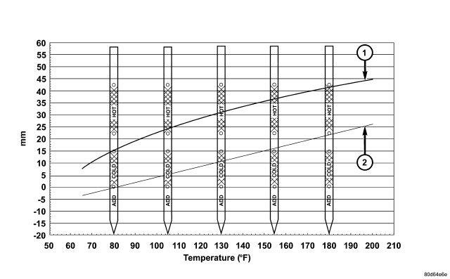 5. Compare the fluid temperature value with the fluid temperature chart (1,2).