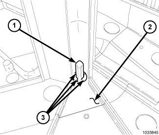 27. Remove the actuator coupler(s) (1) from the HVAC housing (2), as required. Carefully release the three retaining tabs (3) on each actuator coupler from the inside surface of the HVAC housing and push the coupler(s) out of the housing.