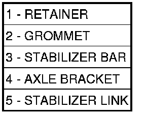 3. Remove the retainers (1) and grommets (2) from the stabilizer bar links (5).