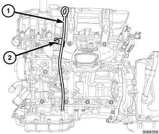 39. Install the oil level indicator tube (1) and the bolt (2). Tighten bolt (2) to 12 Nm (106 in. lbs.).