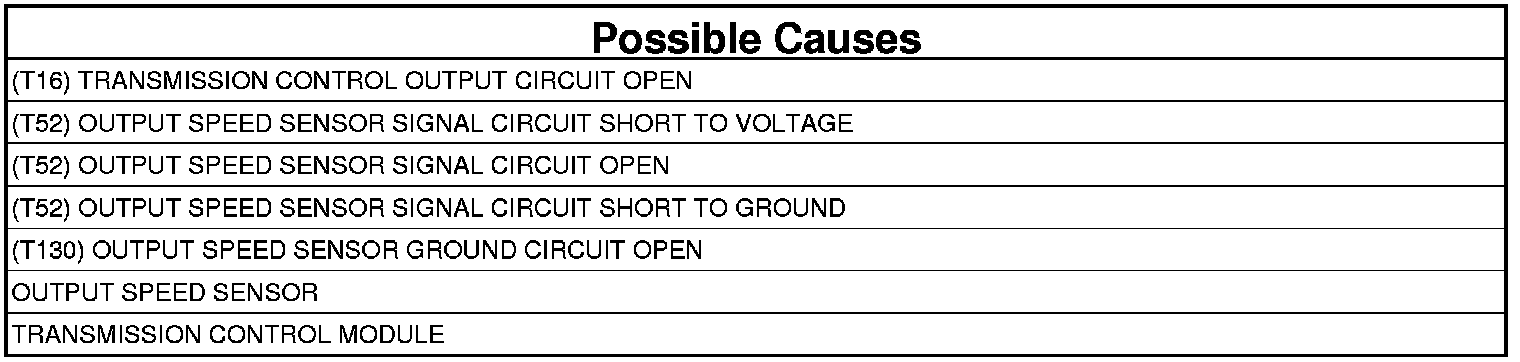 - Repair the (T130) Output Speed Sensor Ground circuit for an open.