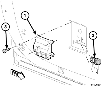 3. Reconnect each of the door wire harness connectors (2) to the connector receptacles of the door control module.