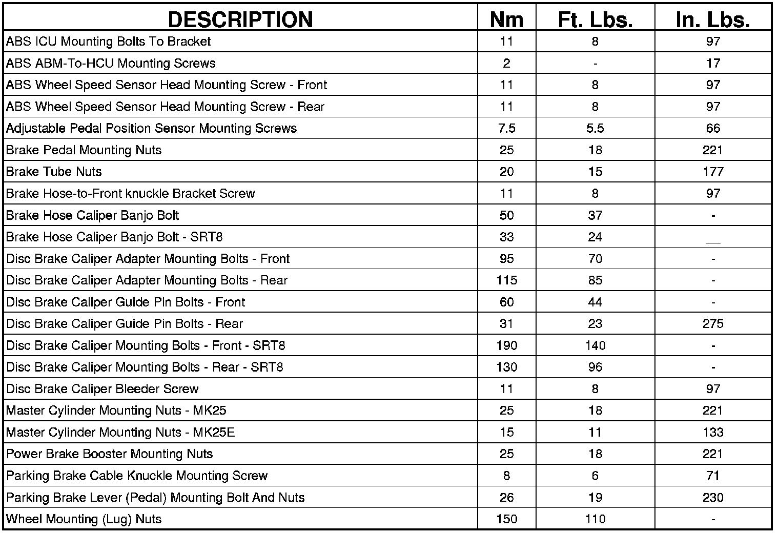 BRAKE FASTENER TORQUE