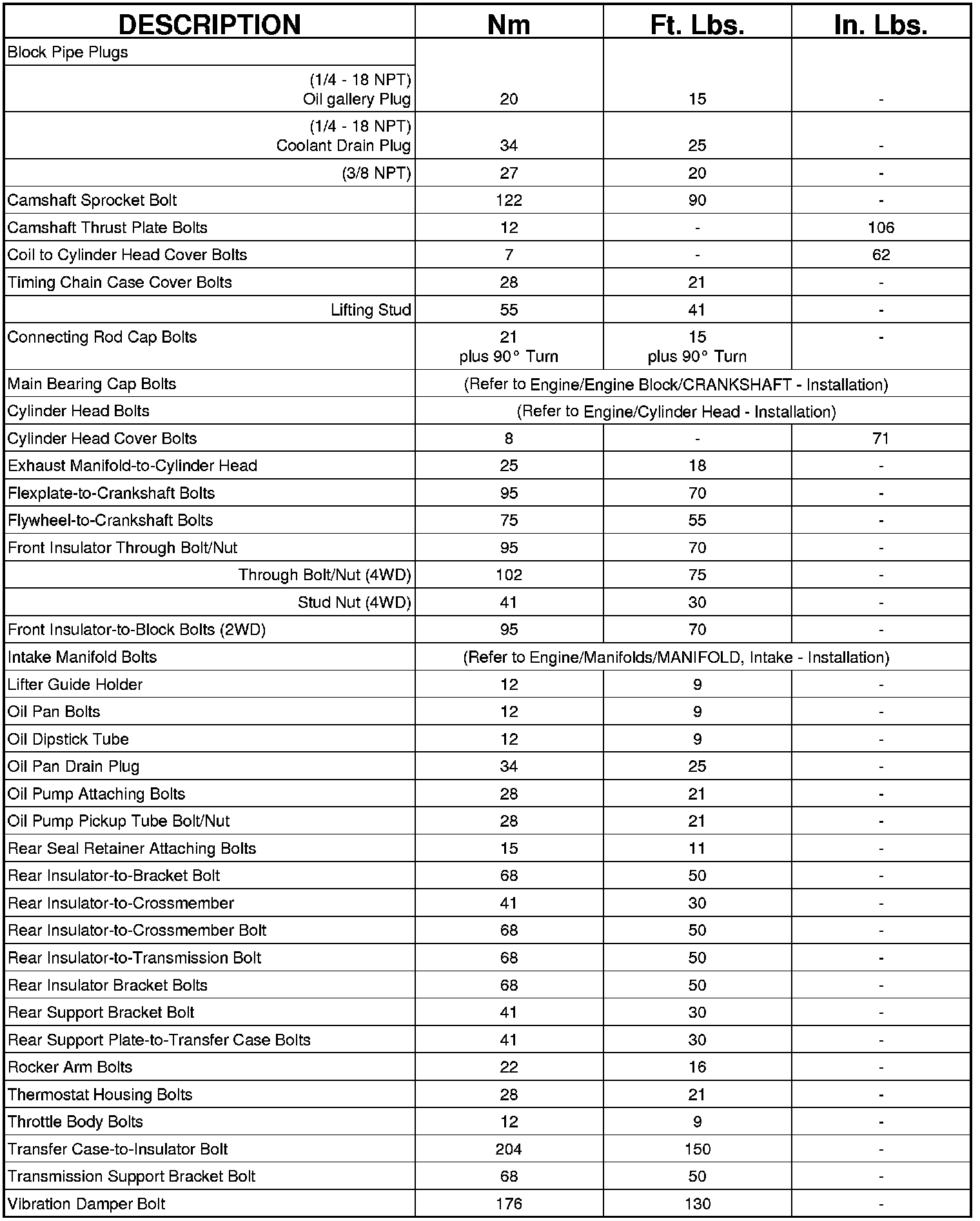 TORQUE CHART 5.7L ENGINE