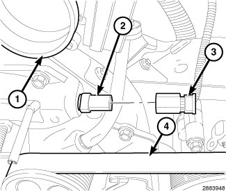 The Engine Coolant Temperature (ECT) sensor is located on the upper portion of the water pump housing. It is installed into a water jacket inline with the thermostat.