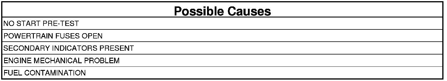 NOTE: Diagnose only the Secondary Indicators that would cause a no start.