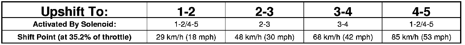 Based on how aggressive the driver is, the TCM moves up the shift so that the present gear is held a little longer before the next upshift. If the driving style is still aggressive, the shift point is modified up to ten steps. If the driving returns to normal, then the shift point modification also returns to the base position.