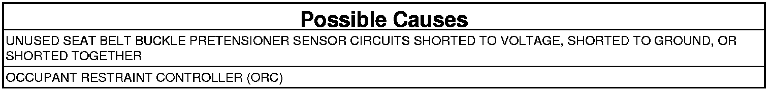 This DTC sets when the ORC detects the presence of a SeatBelt Buckle Pretensioner sensor circuit while the configuration of the module does not reflect a SeatBelt Buckle Pretensioner sensor should be present. Once set, this DTC is latched for the entire power cycle and requires the module to be re-initalized to set code.