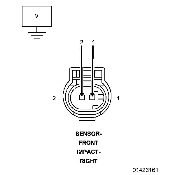 3. Measure the voltage of the (R80) Front Right Impact Sensor Signal circuit and (R82) Sensor Ground circuit at the Front Right Impact Sensor connector and ground.