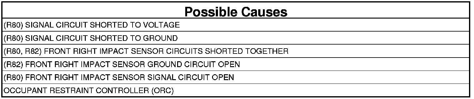 - Repair the (R80, R82) Front Right Impact Sensor circuits shorted together.