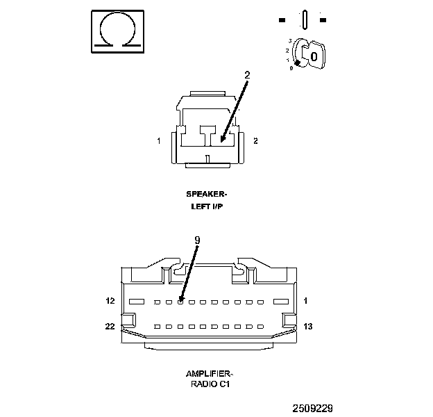 The (X209) Left Front Tweeter (+) circuit and the (X299) Left Front Tweeter (-) circuit are outputs of the Amplifier. The Amplifier controls and monitors these circuits for a concern when the ignition is cycled on.
