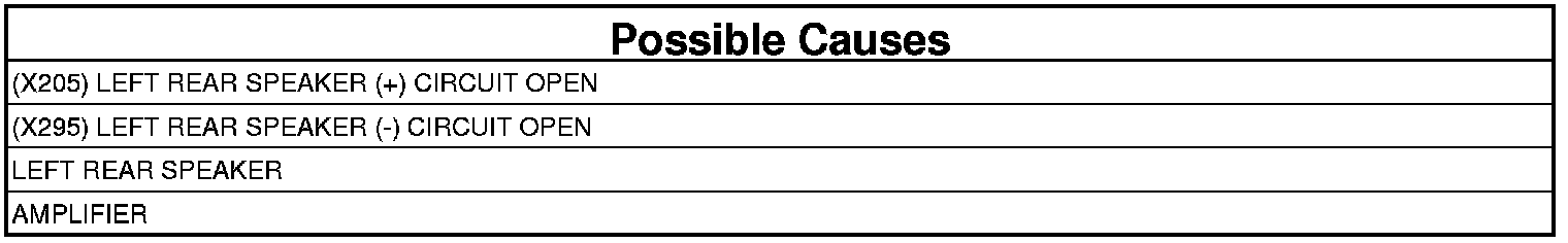 - Repair the (X205) Left Rear Speaker (+) circuit for an open.