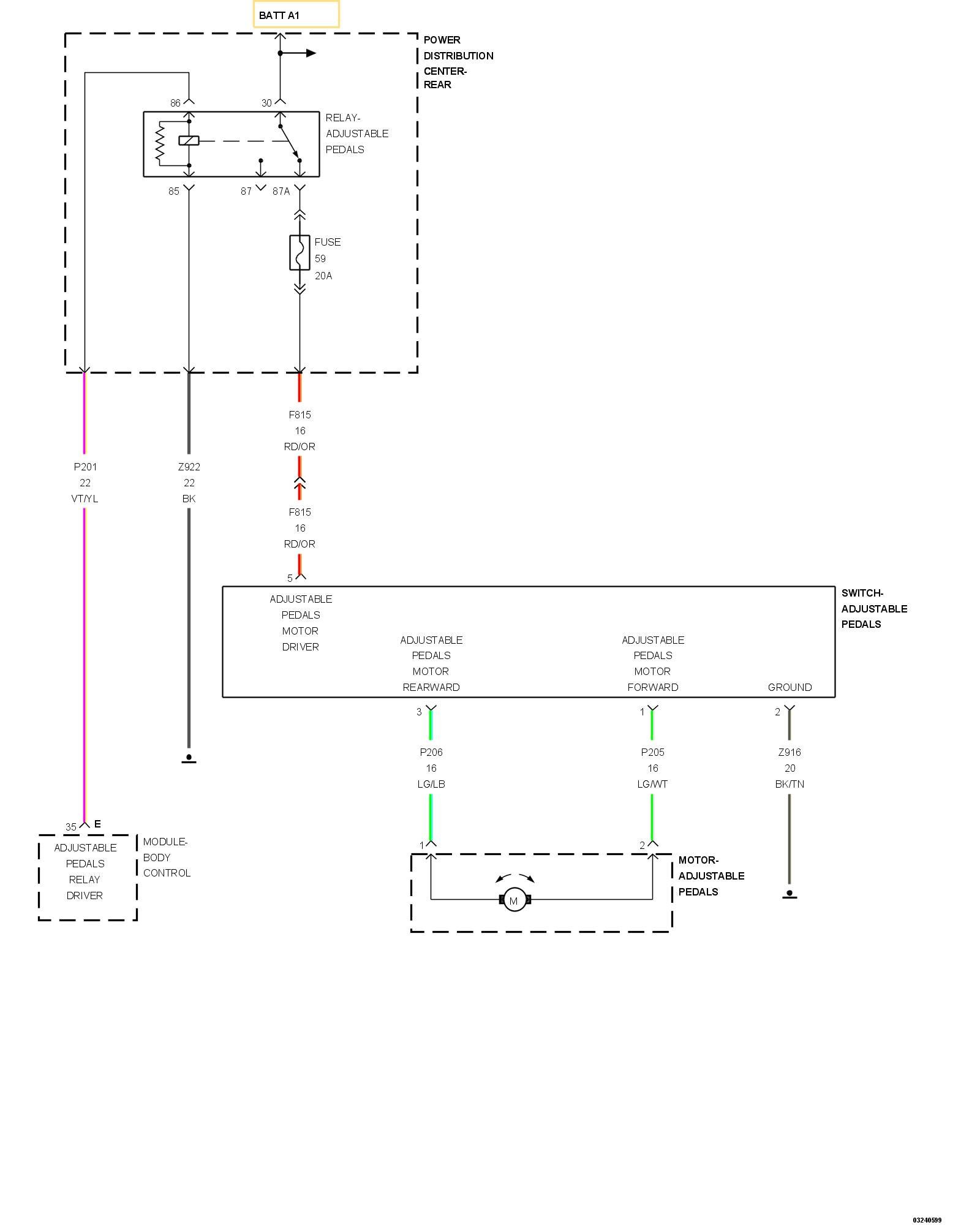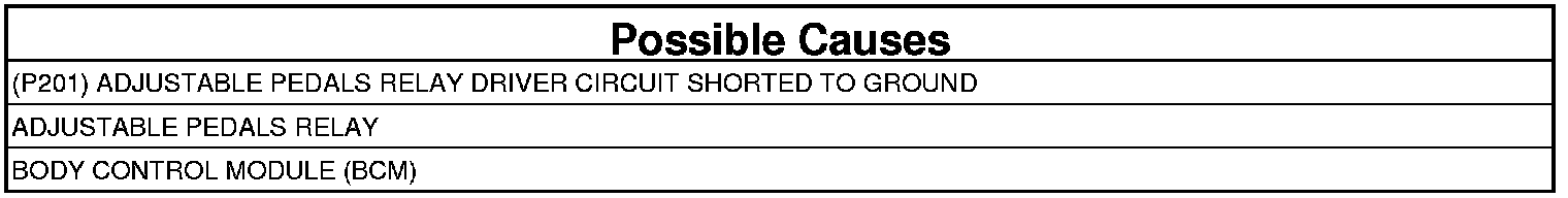 - Repair the short to ground in the (P201) Adjustable Pedals Relay Driver circuit.