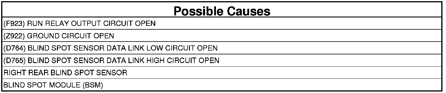 Blind Spot Module (BSM) does not receive messages from the Right Rear Blind Spot Sensor.