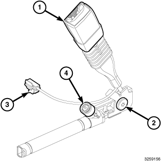 The front seat belt switches are connected to the vehicle electrical system through a two-lead pigtail wire and connector (3) on the front seat belt buckle-half, which is connected to a wire harness connector and take out of the seat wire harness. A one kilohm diagnostic resistor is connected in parallel with the IC where the two pigtail wire leads connect to the IC pins.