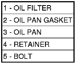 9. Install the oil pan bolts (5) and retainers (4). Torque the bolts to 8 Nm (70 in.lbs.).