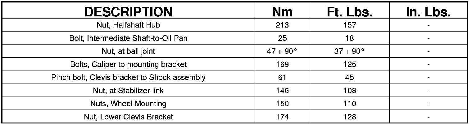 TORQUE SPECIFICATIONS