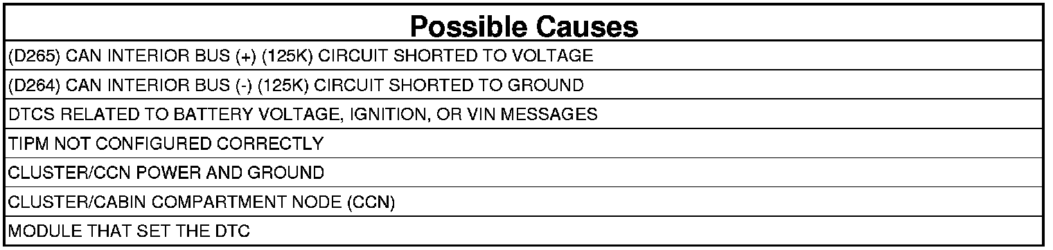 - Repair the short to voltage in the (D265) CAN Interior Bus (+) (125K) circuit.