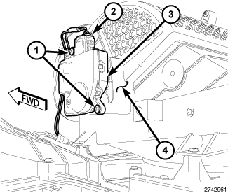 11. Disconnect the wiring harness connector (2) from the recirculation door actuator (3).
