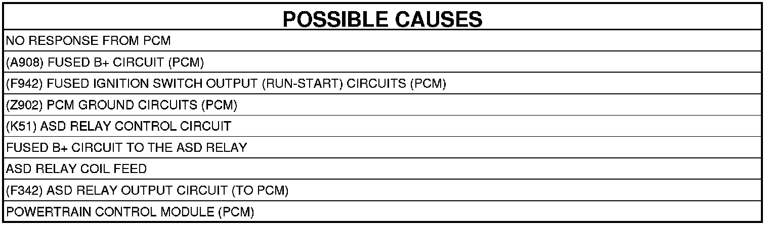 - Repair the open in the (K51) ASD Relay Control circuit.