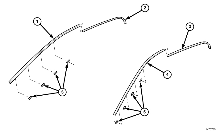 1. Ensure that the roof header seal (2) trough is clean and free of debris.