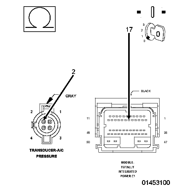 1. Using the wiring diagram/schematic as a guide, inspect the wiring and connectors between the related A/C Pressure Transducer and the Totally Integrated Power Module (TIPM).