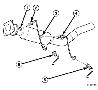 1. Install the O2S (4) to catalytic converter (3). Tighten to 41 Nm (30 ft. lbs.).