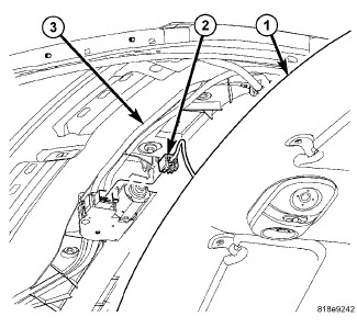 7. If equipped, connect sunroof connector (2) if equipped.