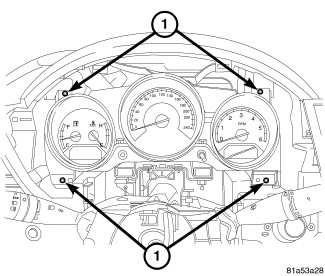 5. Install the four retaining screws (1) to the instrument cluster.