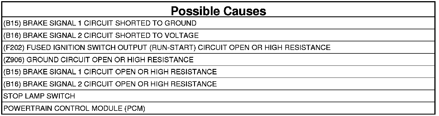 - Repair the (B16) Brake Signal 2 circuit for a short to voltage.