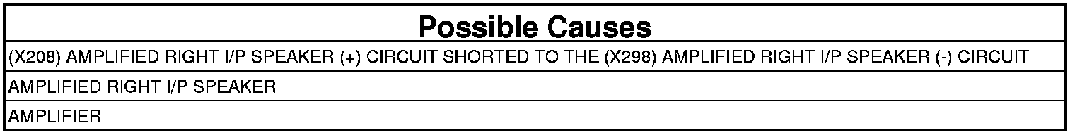 - Repair the (X208) Amplified Right I/P Speaker (+) circuit, and the (X298) Amplified Right I/P Speaker (-) circuit for a short together.