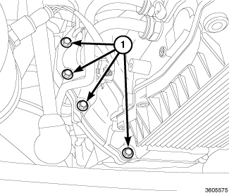 19. Remove the bell housing bolts (1) on the RH side.