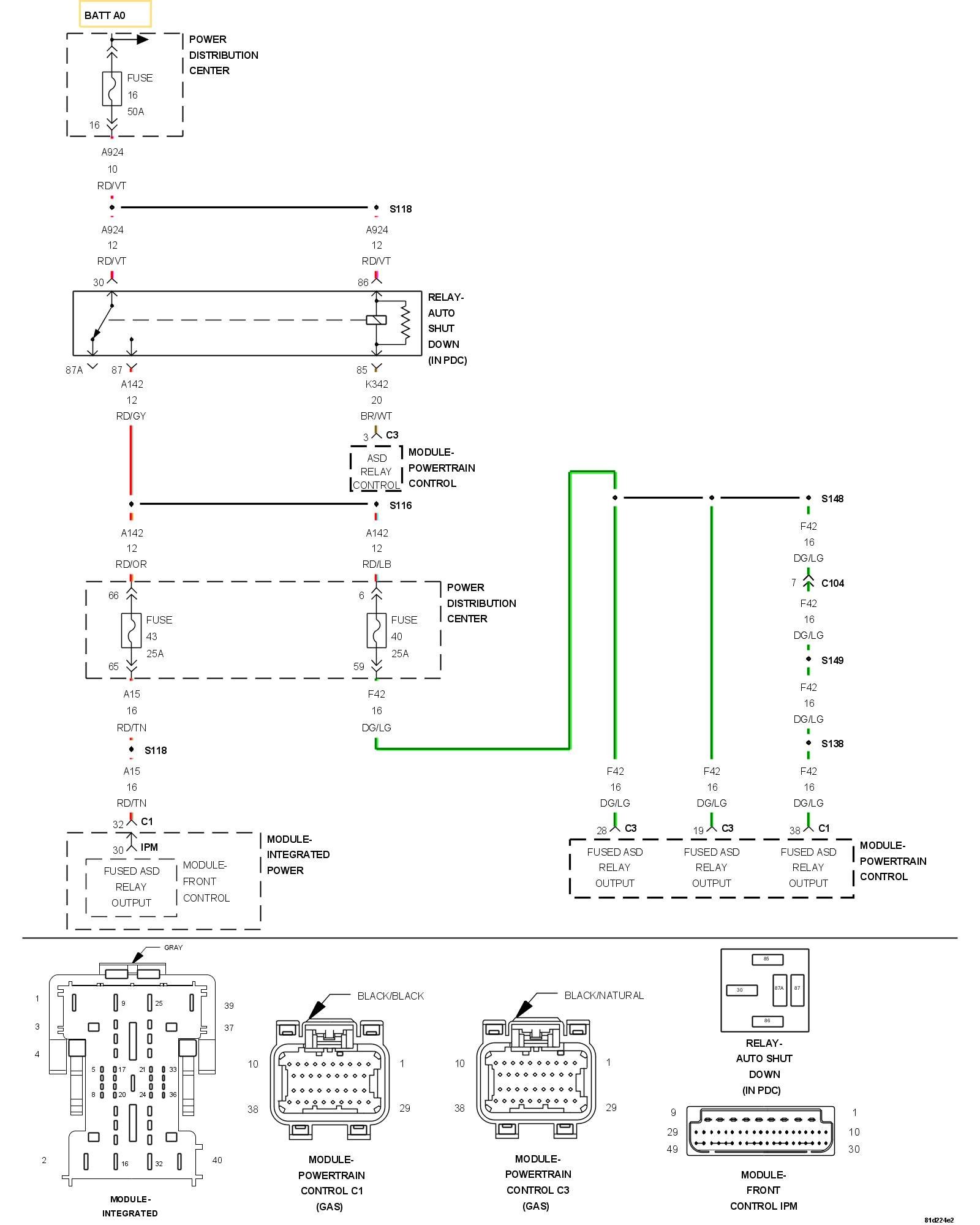 - Repair the open in the (A142) ASD Relay Output circuit.