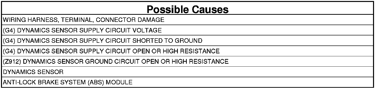 - Repair the (Z912) Dynamics Sensor Ground circuit for an open or high resistance.
