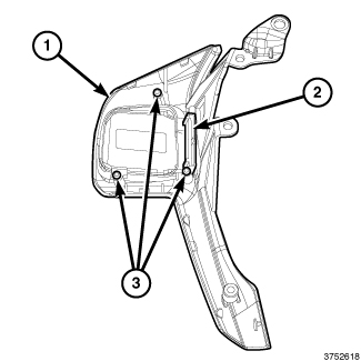 1. Position the speed control switch pod (2) and the mounting adapter plate (3) to the back of the right steering wheel spoke front bezel (1).