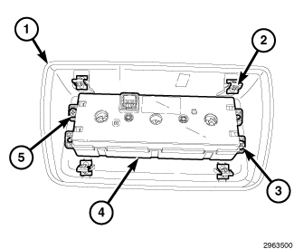 NOTE: Take the proper precautions to protect the face of the overhead console from cosmetic damage while performing this procedure.