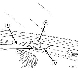 3. Using Trim Stick (1) or equivalent, gently pry between both sides of the sun sensor assembly (2) and the instrument panel (3) to release the snap clip retainers that secure the sun sensor.