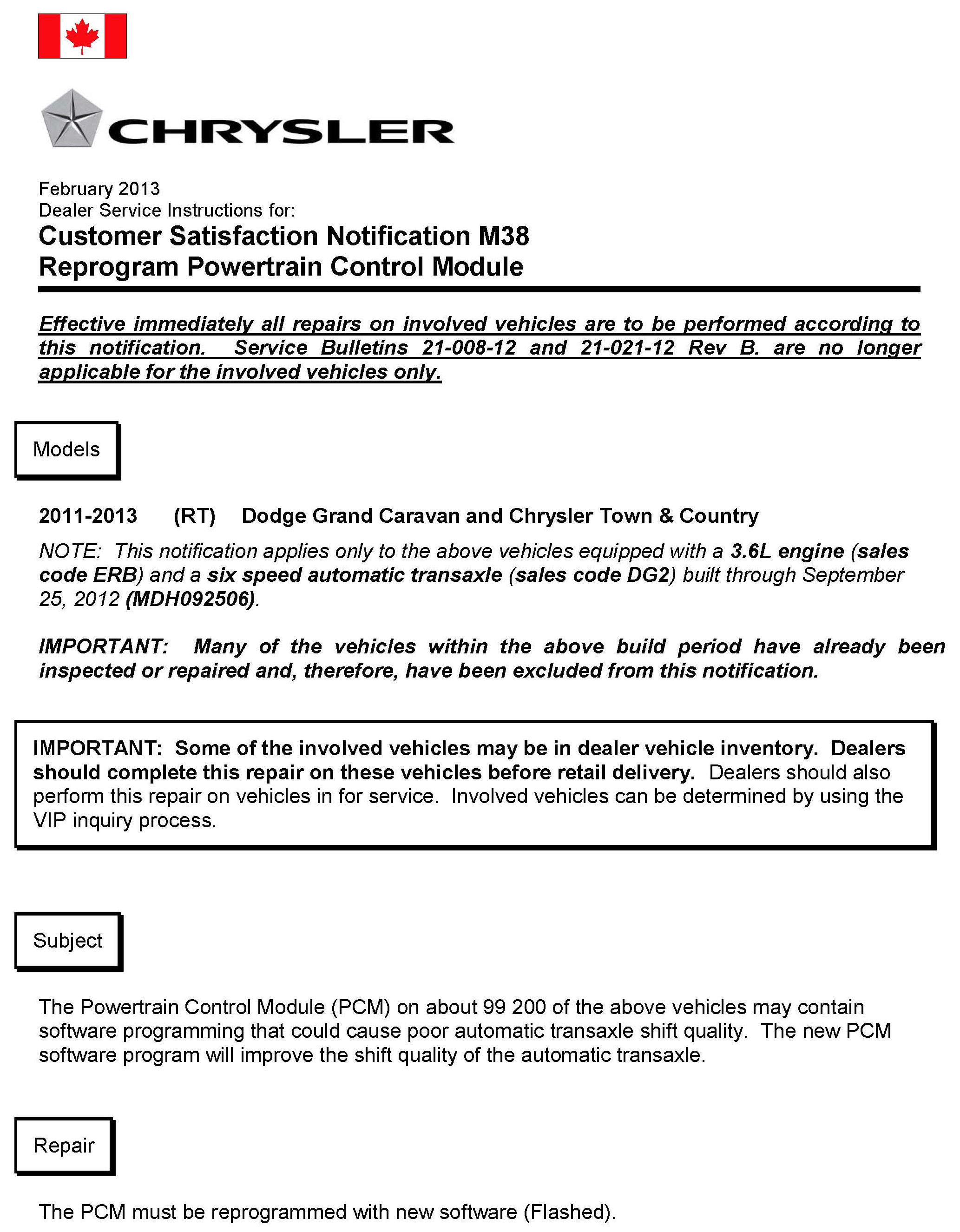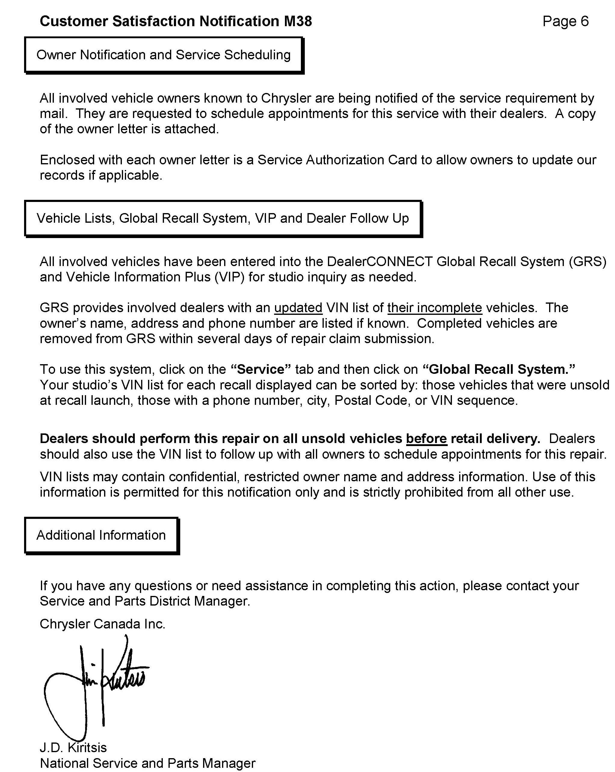 Dealer Service Instructions