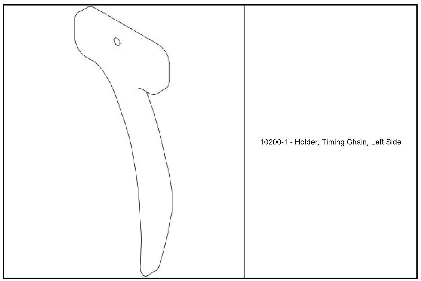 9. Using (10200-3) (2), lift the pawl off of the rack (3). While holding the pawl off of the rack, push (10200-1) (1) into place between the cylinder head and the cam chain guide to force the rack and piston back into the tensioner body. The holder remains in place while the phasers are removed Measuring Timing Chain Wear.
