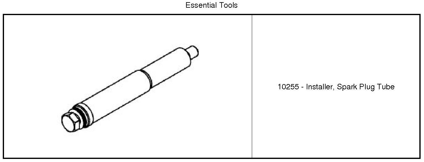 5. Install the top half of Spark Plug Tube Installer (1) into the spark plug tube to be removed (2).
