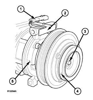NOTE: Typical A/C compressor and clutch assembly shown in illustrations.