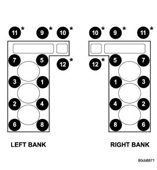 Working in 1/2 turn increments, tighten the bearing cap retaining bolts in the sequence shown.