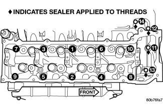 The cylinder head bolts are tightened using a torque plus angle procedure. The bolts must be examined BEFORE reuse. If the threads are necked down the bolts should be replaced.