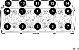 Tighten the cylinder head bolts 11 through 15 20 Nm (15 ft. lbs.).