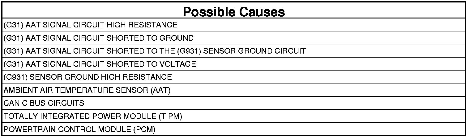 - Repair the excessive resistance in the (G31) AAT Signal circuit.